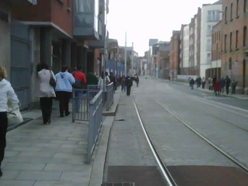 Commuters get off the luas and walk